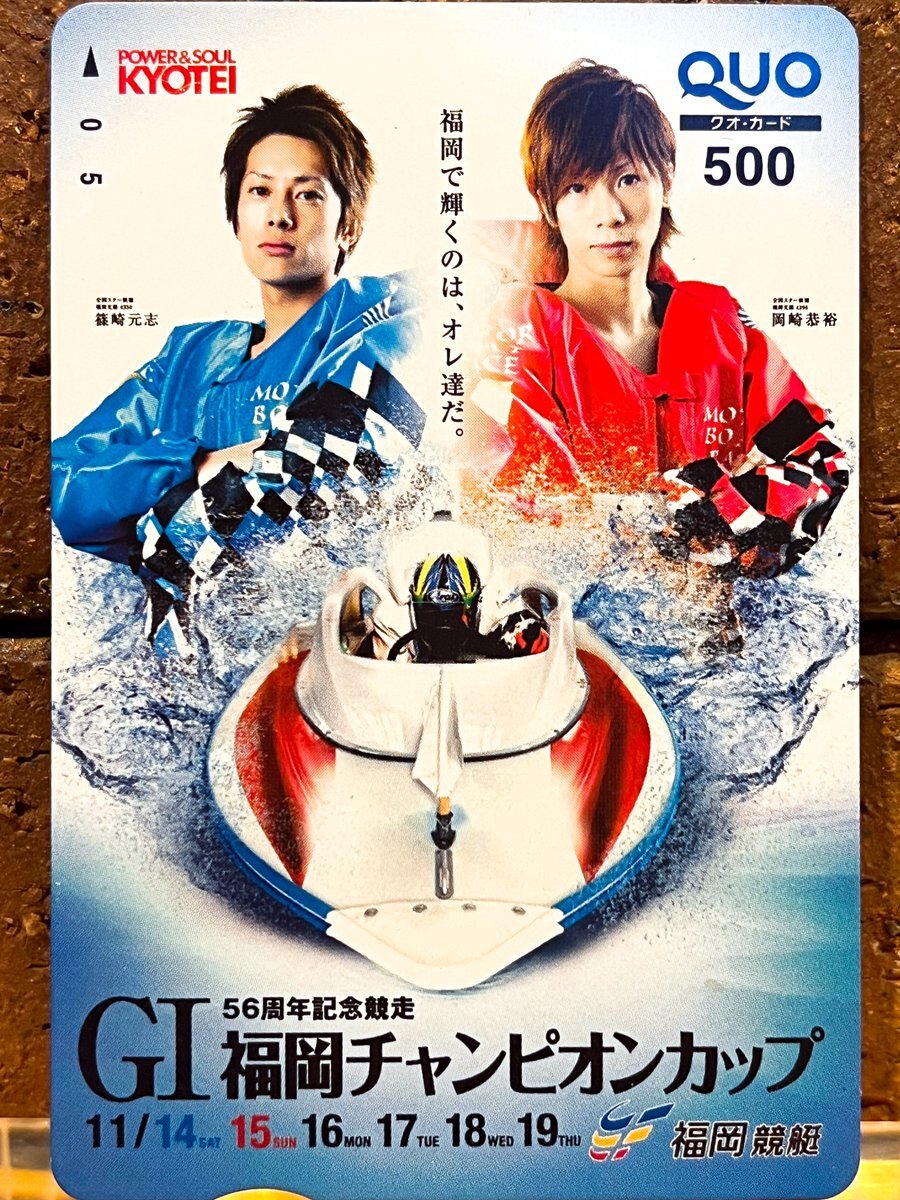 🚤KAPOJACKカードコレクションNo.1🚤 / 👑オーナー秘蔵の“推しカード”を一部公開✨ \ #チャレンジカップ 開催中につき、出場選手のカードをご紹介❣️ 『56周年記念競走 G1福岡チャンピオンカップ QUOカード(2009年)』 本日10レースを出走予定の #篠崎元志 選手 と 福岡支部の #岡崎恭裕 選手🔥 pic.x.com/e5PfOgWoAd