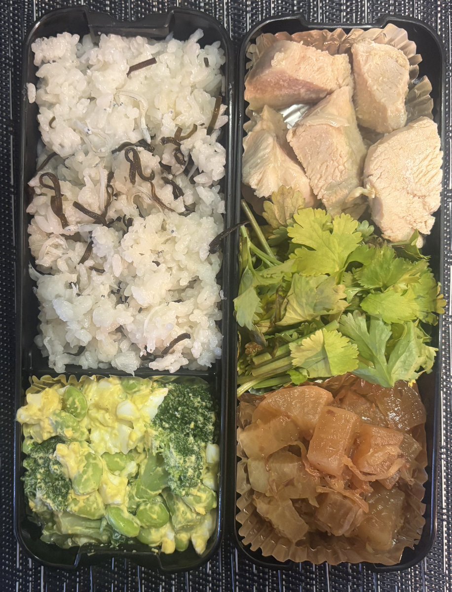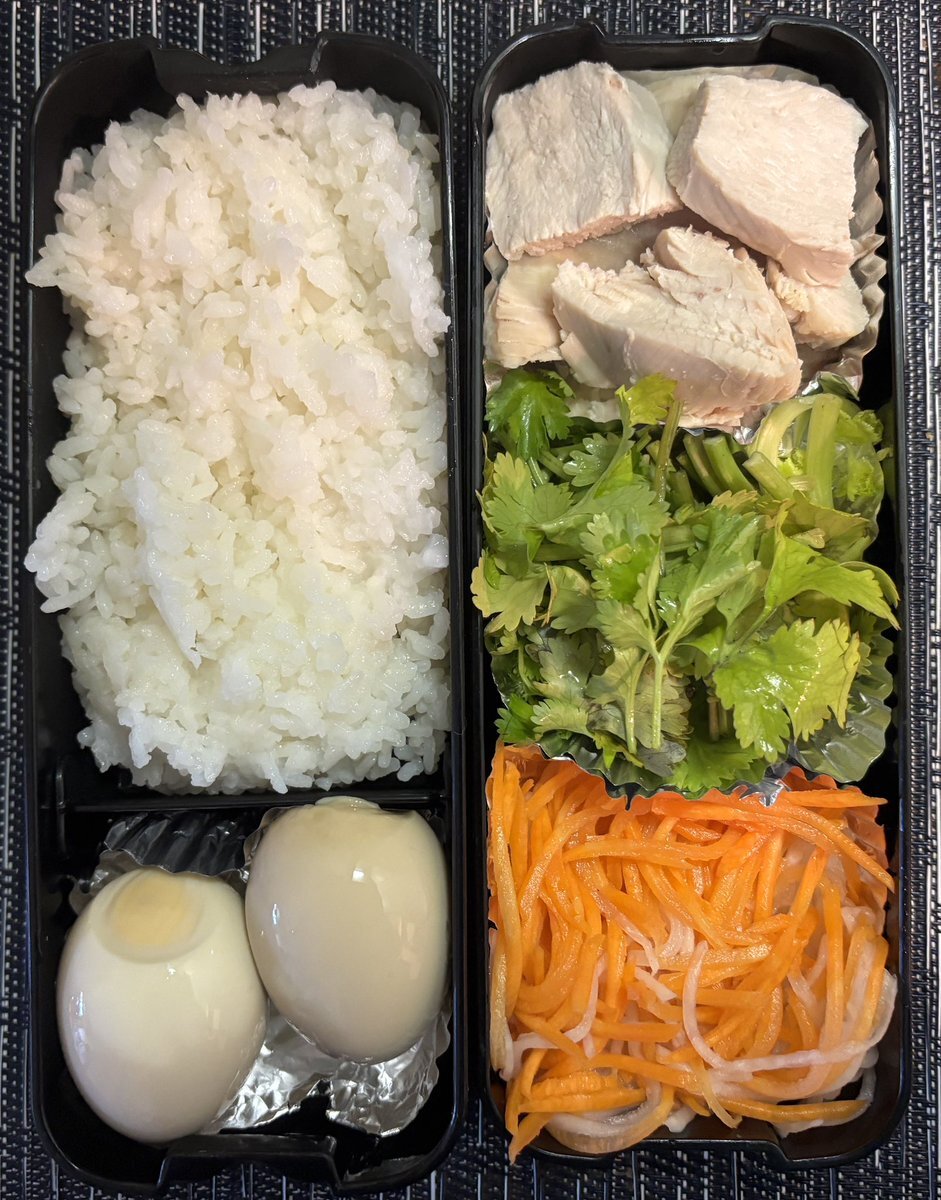 11/6おべんと ・サラダチキン ・パクチー ・紅白なます ・ゆで卵 ご飯はそのまま。👍 #料理男子 #弁当男子 #あっきーくっきんぐ #料理好きな人と繋がりたい #簡単弁当 #弁当記録 pic.x.com/Qse0fK74VD
