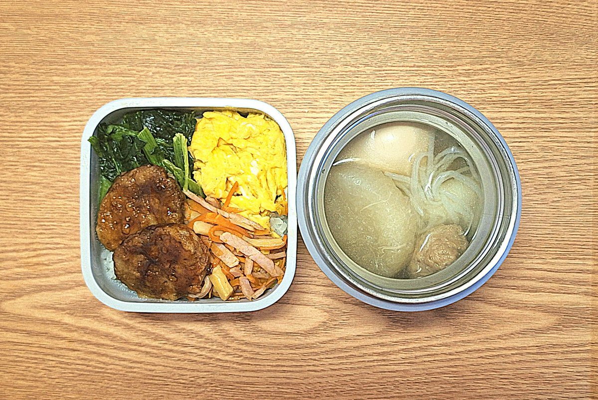 お弁当記録463日目。 ・おでん🍢 ・照り焼きつくね ・ほうれん草のソテー ・炒り卵 ・にんじんの炒め煮 #お弁当日記 #スープジャー #簡単弁当 #節約弁当 #さの日記 pic.x.com/Tb8MUN5aPp