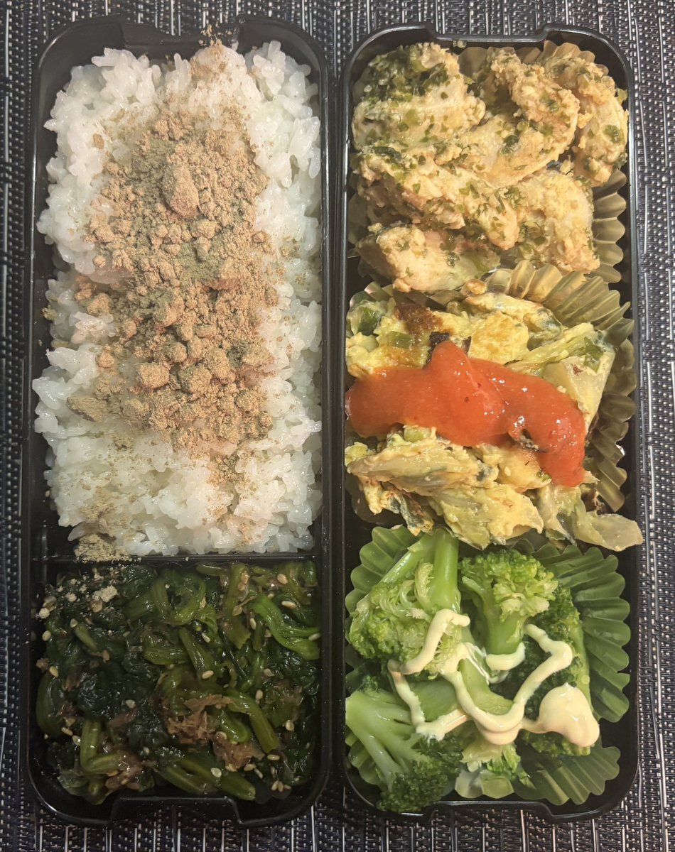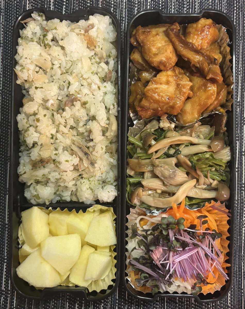 11/10おべんと ・鶏むね肉の味噌炒め ・空芯菜ときのこの中華風炒め ・なますとレッドキャベツスプラウトのサラダ ・りんご ご飯冷凍すけそうだらを炒めてあおさをかけたものとまぜて。👍 #料理男子 #弁当男子 #あっきーくっきんぐ #料理好きな人と繋がりたい #簡単弁当 #弁当記録 pic.x.com/97aZzQpvIu