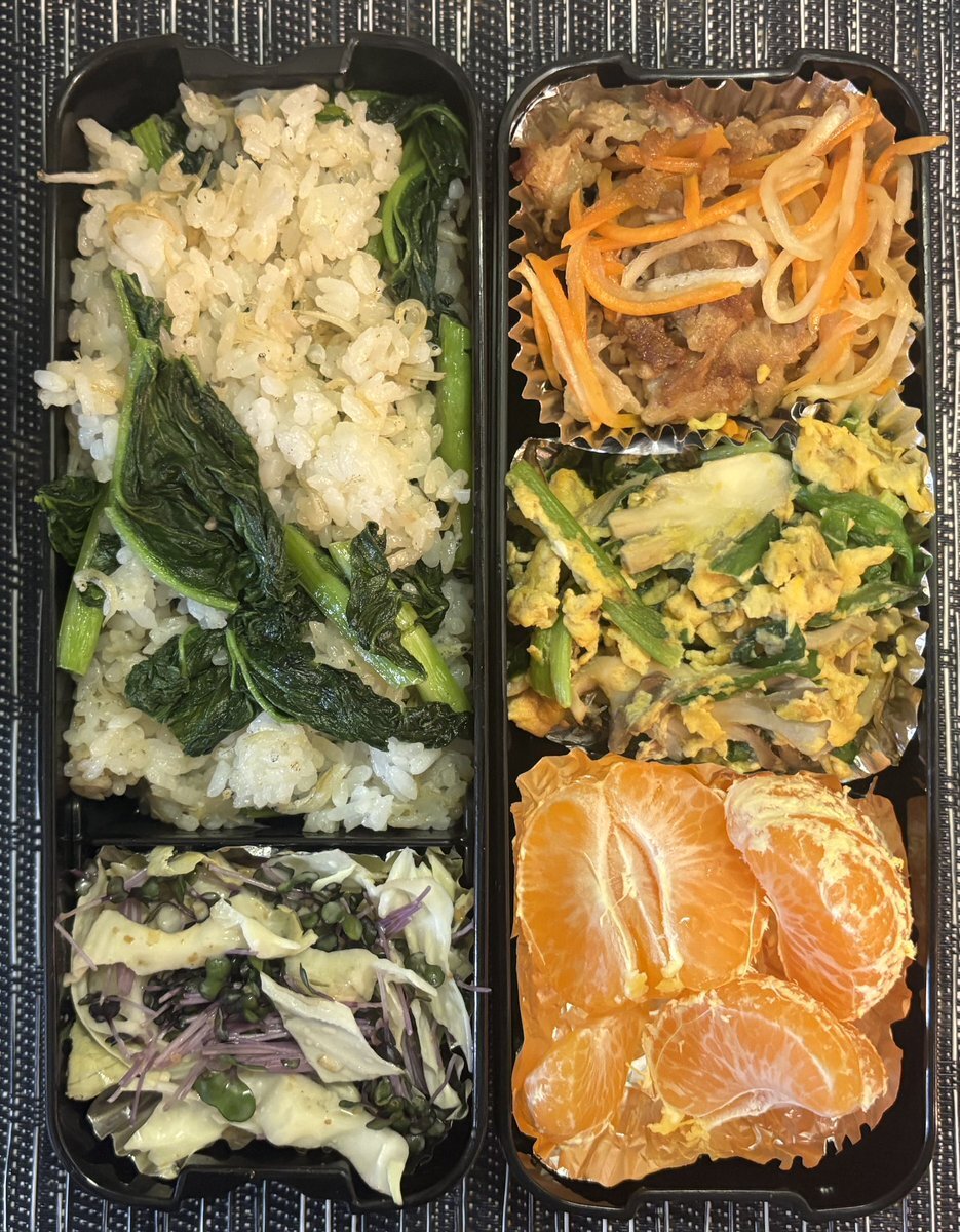 11/11おべんと ・豚こまとなますの炒め物 ・ニラ玉と舞茸の炒め物 ・みかん ・キャベツとレッドキャベツスプラウトのサラダ ご飯は蕪の葉としらすの炒飯で。👍 #料理男子 #弁当男子 #あっきーくっきんぐ #料理好きな人と繋がりたい #簡単弁当 #弁当記録 pic.x.com/YV12FAwjcl