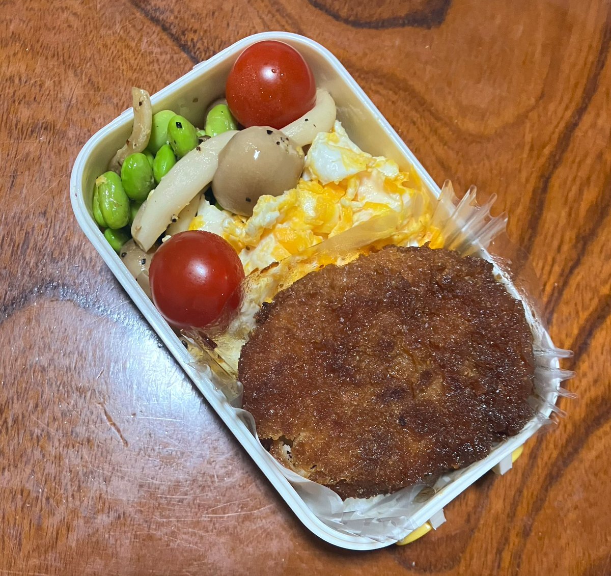 2025/11/05 水曜 おはようございます。 今日の予報は17度。 今朝は5度でした😨 良い一日をお過ごしください。 4日ぶりの仕事です💦 不安でいっぱい😓 #簡単弁当 #時短弁当 #お弁当記録 #るいら飯 #今日のお弁当 卵焼き、枝豆、しめじ、コロッケのソース甘煮、など pic.x.com/MX029e8DI7