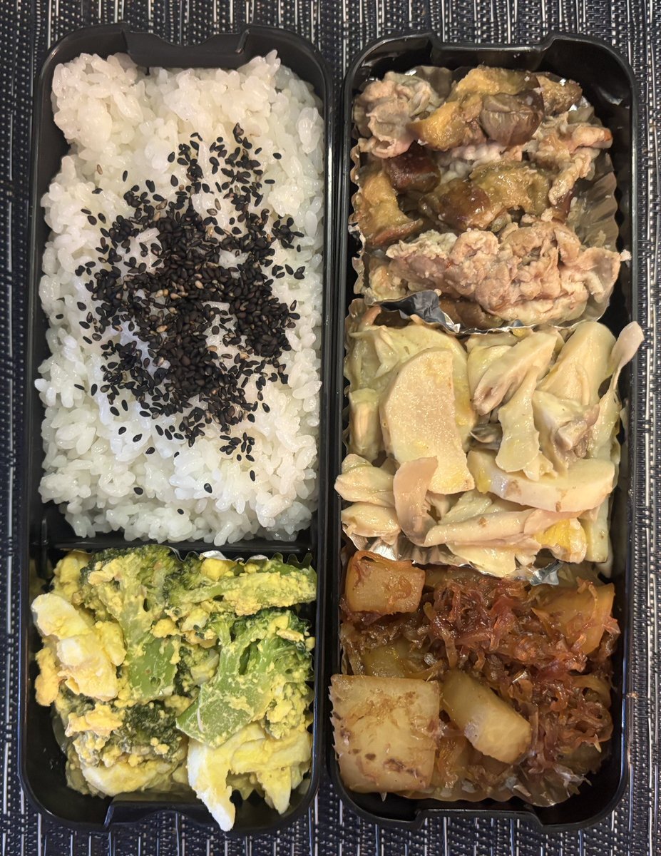 11/4おべんと ・茄子と豚肉の炒め物 ・長芋と舞茸のバターソテー ・大根の炒め物 ・ブロッコリーとゆで卵のマヨサラダ ご飯は黒ゴマをかけて。👍 #料理男子 #弁当男子 #あっきーくっきんぐ #料理好きな人と繋がりたい #簡単弁当 #弁当記録 pic.x.com/T4OJ7SMVon
