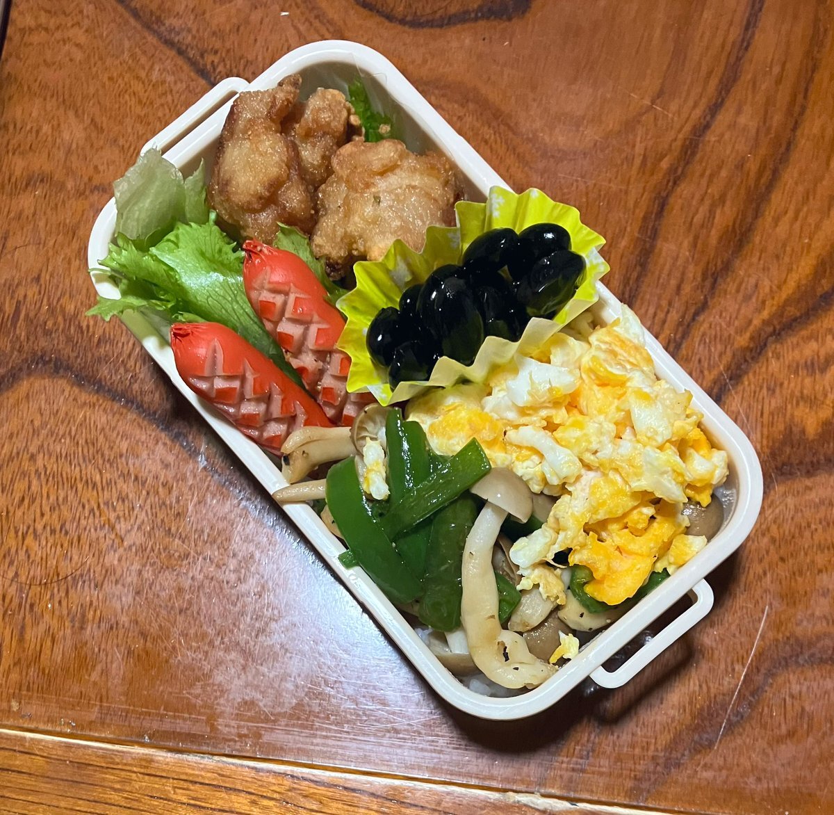 2025/11/11 火曜 おはようございます。 今朝も5時半起き。昨夜は夕飯後に寝落ちして、夜中に目が覚めて米といで二度寝。いっぱい寝た😀 良い一日でありますように お仕事します! #簡単弁当 #時短弁当 #お弁当記録 #るいら飯 #今日のお弁当 卵焼き、ピーマン、しめじ、黒豆、唐揚げ、ウインナーなど pic.x.com/v6cASpk98Q