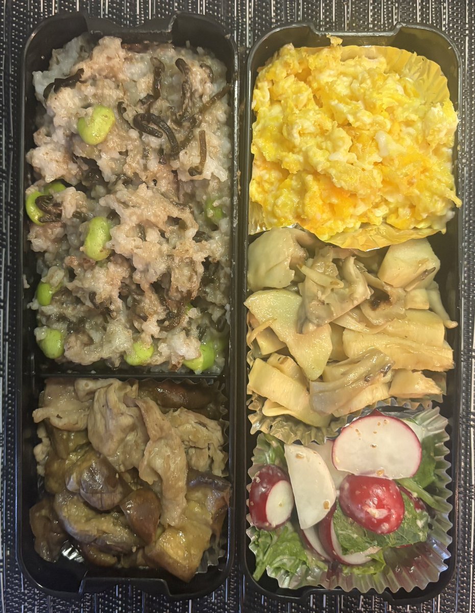 11/3おべんと ・スクランブルエッグ ・長芋と舞茸のバターソテー ・ラディッシュのサラダ ・茄子と豚肉の炒め物 ご飯は枝豆と塩昆布を混ぜて。👍 #料理男子 #弁当男子 #あっきーくっきんぐ #料理好きな人と繋がりたい #簡単弁当 #弁当記録 pic.x.com/Eh2Uf3x4Ph