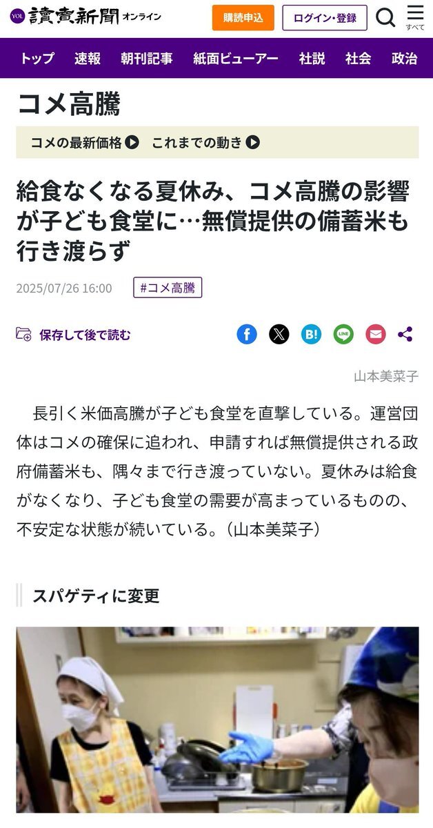 返信先:@kushibuchi給食なくなる夏休み、コメ高騰の影響が子ども食堂に…無償提供の備蓄米も行き渡らず : 読売新聞オンライン yomiuri.co.jp/national/20250… #米の先物取引 米の先物取引 #堂島取引所 堂島取引所 #SBI証券 SBI証券 pic.x.com/zyjVXWI7jH