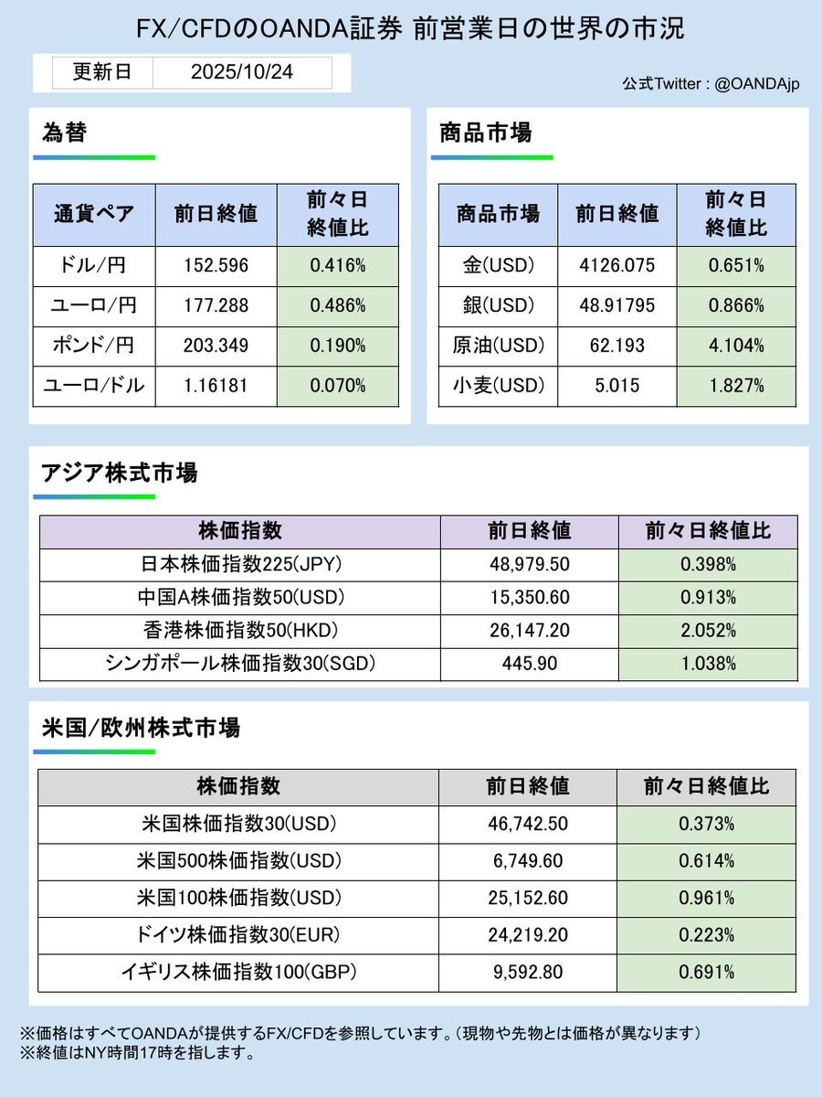 📈 2025年10月24日の主な経済指標 📉 08:30(日)9月全国消費者物価指数(CPI) 21:30(米)9月消費者物価指数(CPI) 23:00(米)10月ミシガン大学消費者態度指数 #OANDA #FX #ドル円 #ユーロ #ゴールド #経済指標 #日経平均株価 #トランプ米大統領 #トランプ関税 #高市 #米雇用統計 pic.x.com/nC2LKF71Xr