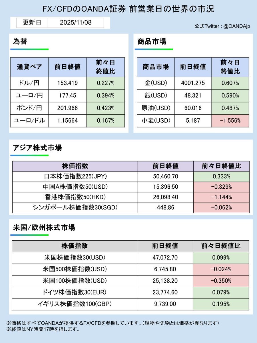 📈 2025年11月7日の主な経済指標 📉 22:30(加)10月失業率 24:00(米)11月ミシガン大学消費者態度指数 #OANDA #FX #ドル円 #ユーロ #ゴールド #経済指標 #日経平均株価 #トランプ米大統領 #トランプ関税 #高市トレード #米雇用統計 #為替 #fx #資産運用 #市況 #CFD pic.x.com/KPy15wVKbs