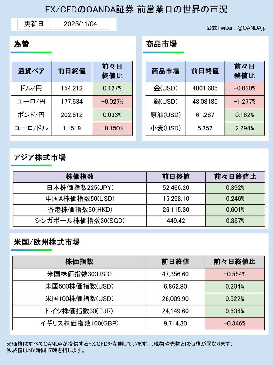 📈 2025年11月4日の主な経済指標 📉 12:30(豪)豪準備銀行 政策金利発表 22:30(米)9月貿易収支 24:00(米)9月雇用動態調査(JOLTS) #OANDA #FX #ドル円 #ユーロ #ゴールド #経済指標 #日経平均株価 #トランプ米大統領 #トランプ関税 #高市トレード #米雇用統計 #為替 #fx #資産運用 pic.x.com/7qWRfMHeye