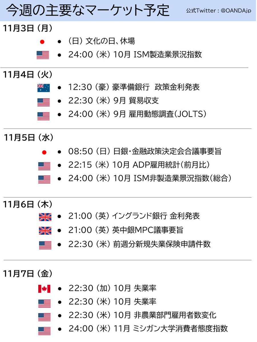 📈 2025年11月3日の主な経済指標 📉 🎌(日本)文化の日 休場 🎌 24:00(米)10月ISM製造業景況指数 #OANDA #FX #ドル円 #ユーロ #ゴールド #経済指標 #日経平均株価 #トランプ米大統領 #トランプ関税 #高市トレード #米雇用統計 #為替 #fx #資産運用 #市況 #CFD