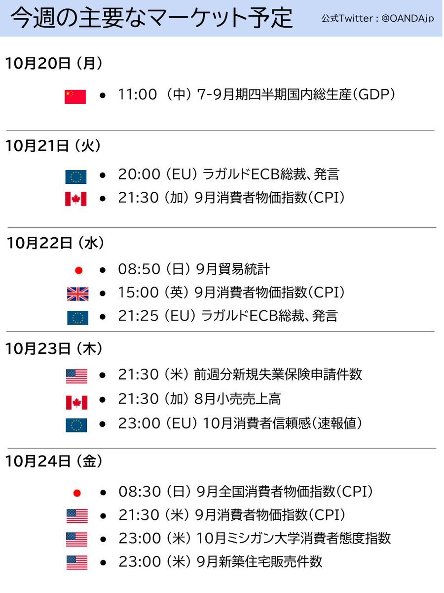 📈 2025年10月20日の主な経済指標 📉 11:00(中)7-9月期四半期国内総生産(GDP) #OANDA #FX #ドル円 #ユーロ #ゴールド #経済指標 #日経平均株価 #トランプ米大統領 #トランプ関税 #高市 #米雇用統計 #為替 #fx #資産運用 #市況 #CFD