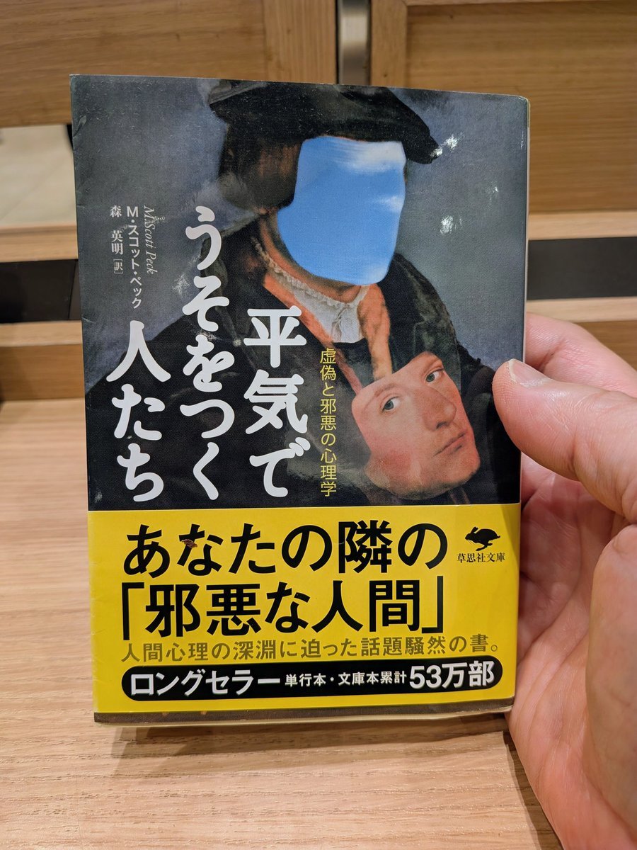 『#平気でうそをつく人たち』読了。 #精神医学、#心理学 の本ですが、#戦争 と #平和 について考えさせられる記述もあり、素晴らしい本でした。感動したし、多くの気づきがありました。 多くの方に強くお勧めしたい本です。 pic.x.com/dNKGfrjilu