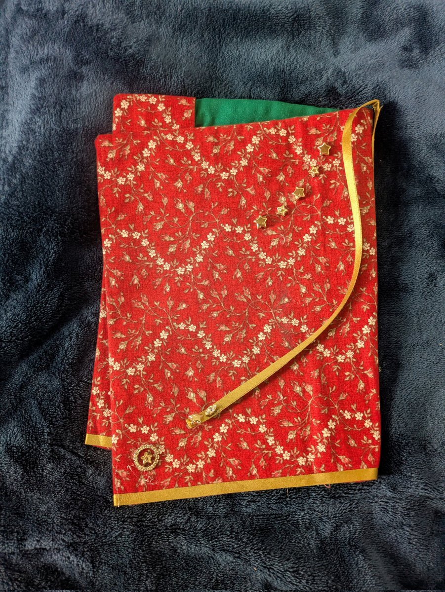 愛子と夢子の色の ブックカバーが完成しました。 金色は、祈りと希望の光。 これから綴る物語を そっと守るように。 皆様の物語にも、 どうぞあたたかな光を。 #糸の書架 #文学的手芸 #詩のある手仕事 #深紅と緑 #赤い糸 #手縫い #ブックカバー #幻想手芸 pic.x.com/HoHVQKNT48