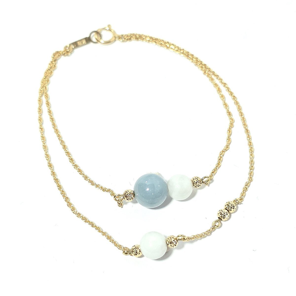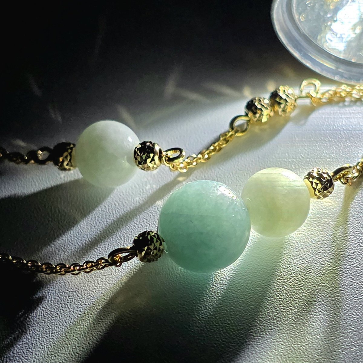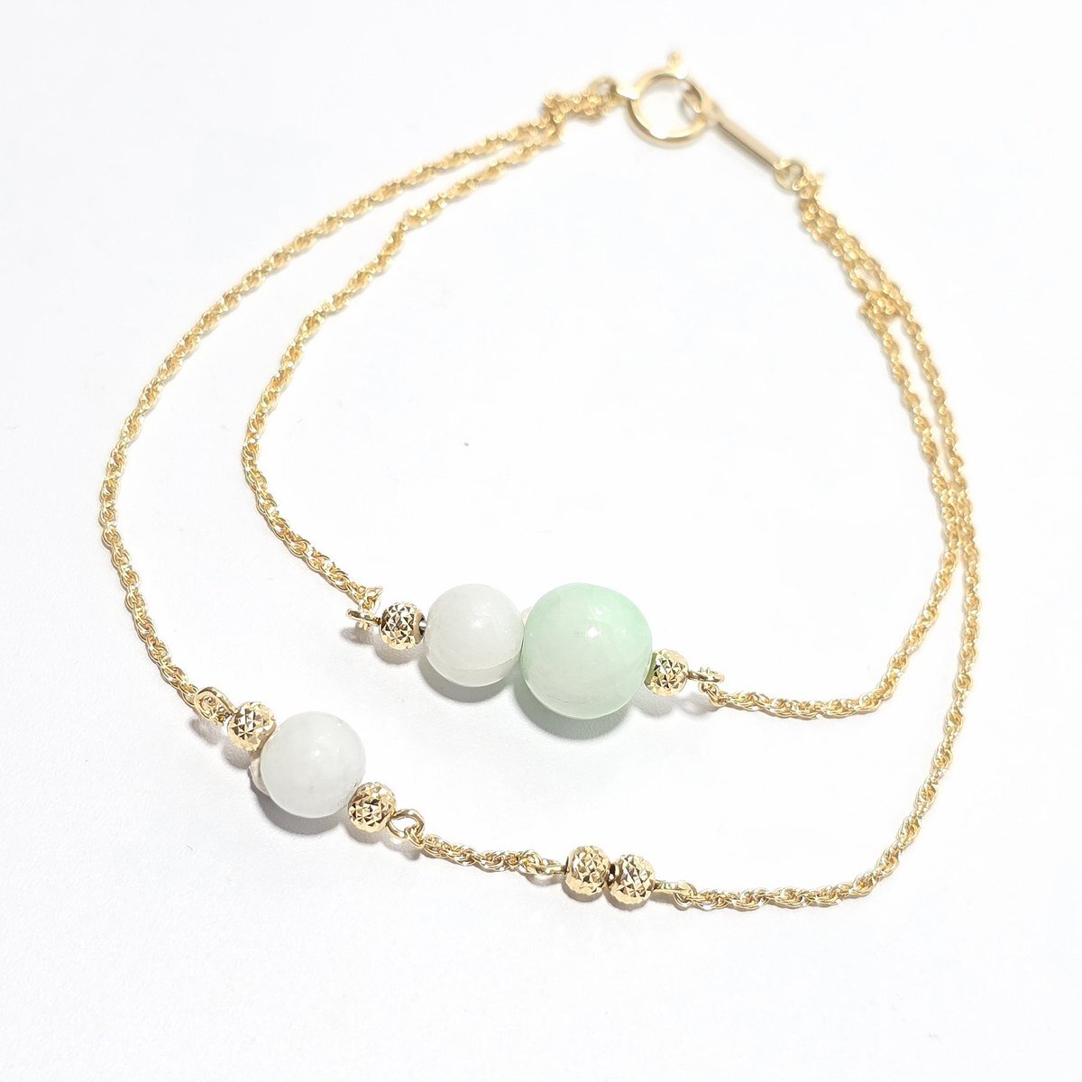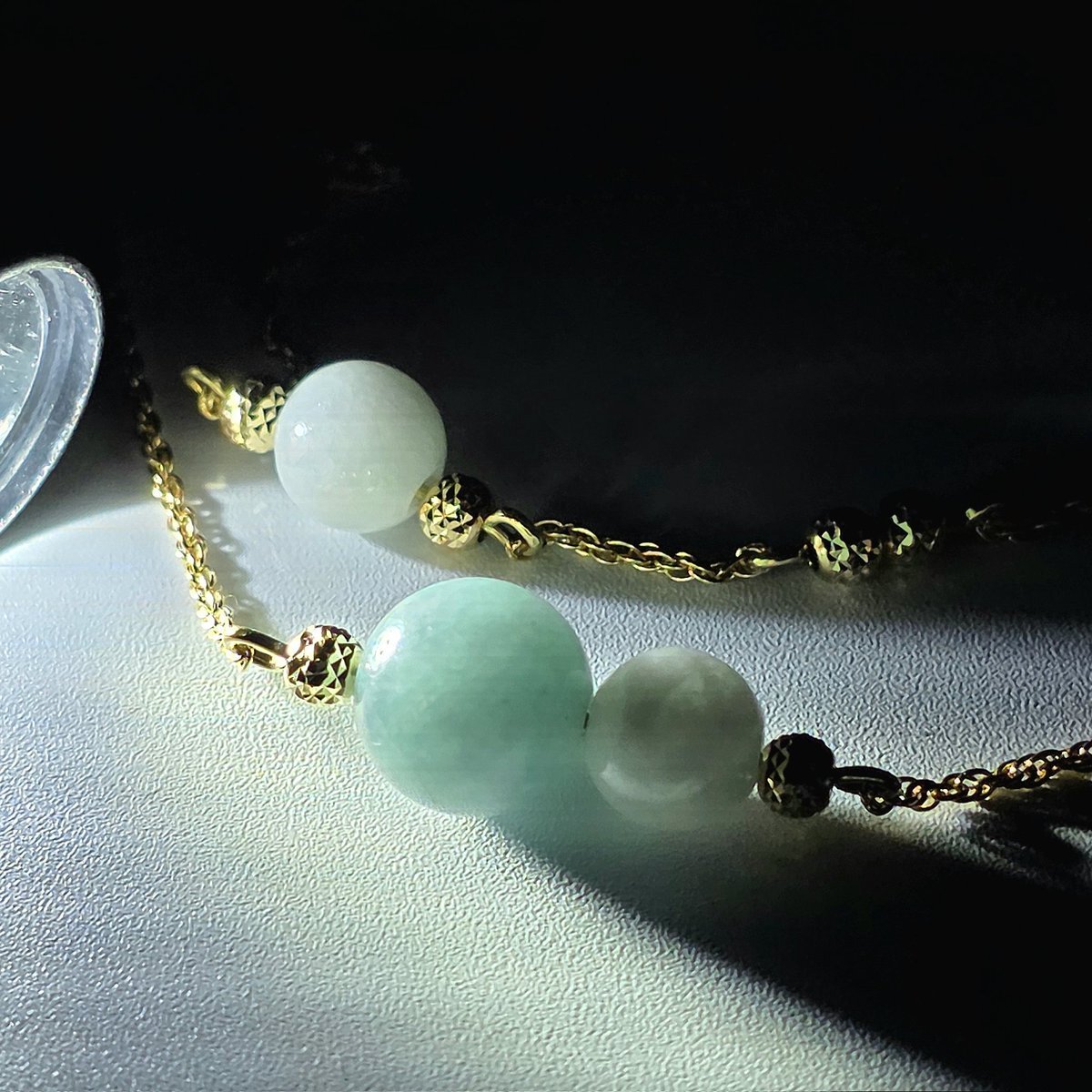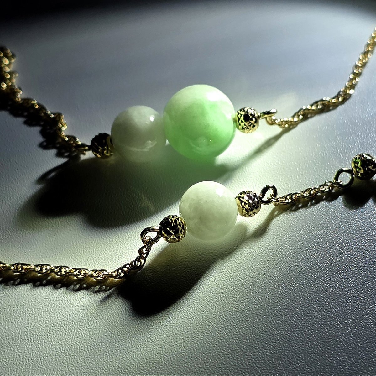 糸魚川翡翠は日本の国石であり日本最古の宝石です。 入コン沢とK18 チェーンのブレスレット 石質・艶の良い美しい翡翠です ・サイズ 約14~15cm ・翡翠玉 入コン沢8㍉×1個:白6㍉×2個 ・重さ 4g ・チェーン K18 ・入コン沢青色と白 #糸魚川翡翠工房こたきBASE店 #糸魚川翡翠ブレスレット pic.x.com/XQ4PUHco7j