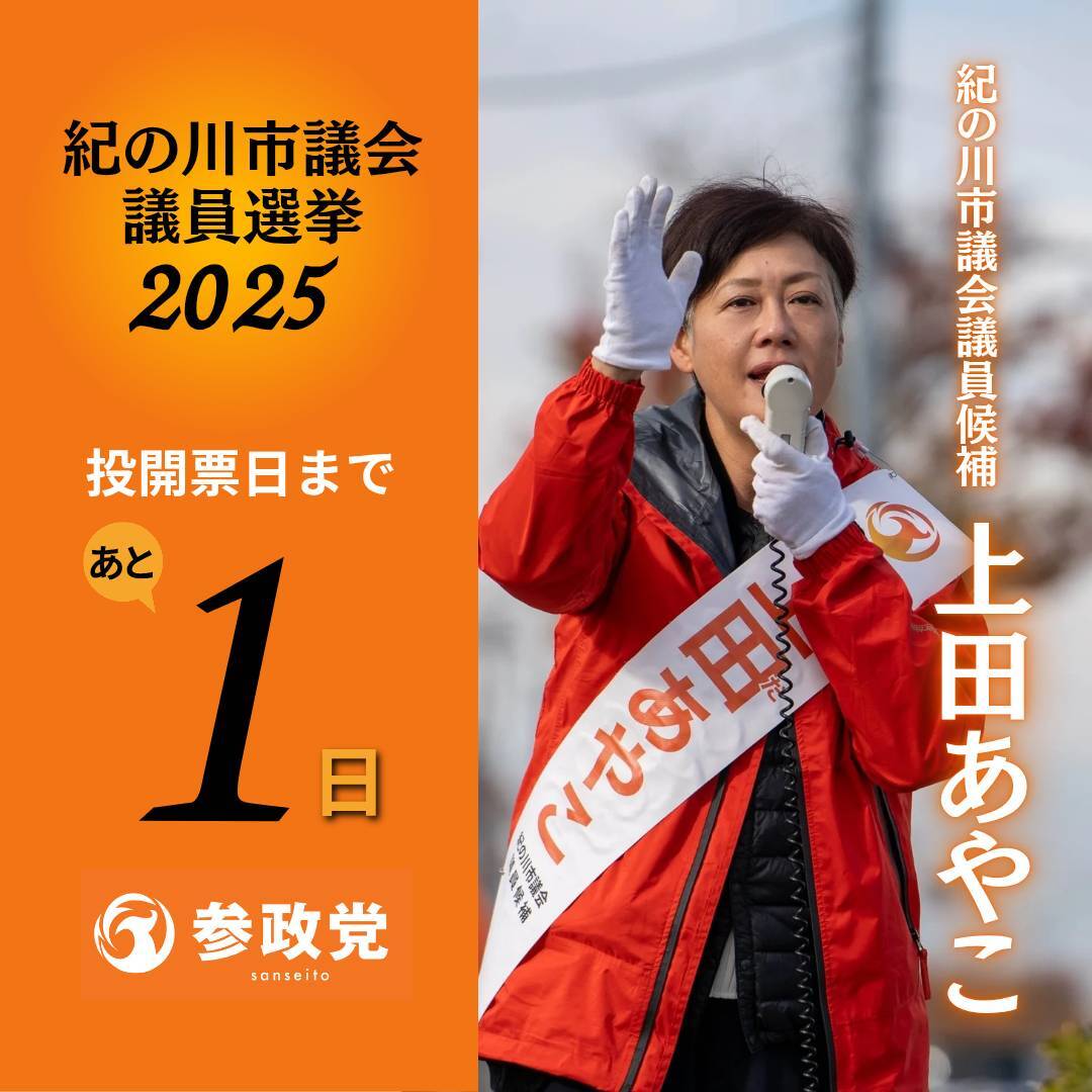 ラストスパート❗❗❗ 参政党の勢いは止まらない 参政党公認候補者は何としても全員当選✊㊗️❗❗❗ 絶賛応援を宜しくお願いします🙇‍♀️❗❗❗  #紀の川市議会議員選挙 #上田あやこ @ueda__ayako #参政党は国民運動 #日本人ファースト参政党 x.com/cat_japan4192/…