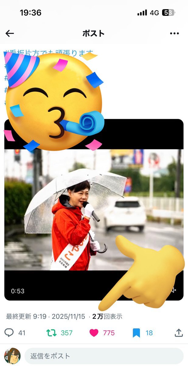 本日は朝からずーっと🌞 上田さんの応援アタッカーをやってます! なんと!!! 上田あやこさんの投稿ポスト👀✨ 表示回数が2万回に到達しました!! みなさん! たくさんのコメントありがとうございます! ばんざーい♪\( ˆoˆ )/ばんざーい♪\( ˆoˆ )/ #紀の川市議会議員選挙 #上田あやこ pic.x.com/X5ki17axoE x.com/ueda__ayako/st…