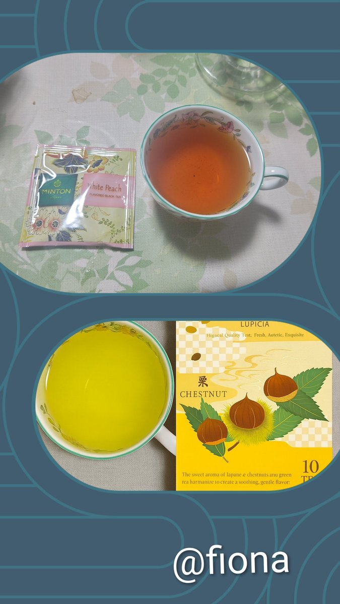 今日の寝る前のお茶会🌙 ミントンの和紅茶「白桃」と ルピシアの「栗の緑茶」を飲み比べ🍑🌰 優しい香りで一日の締めくくりにぴったり…☺️ #ティータイム #紅茶好きさんと繋がりたい #ルピシア #ミントン pic.x.com/q1YkFrR96P