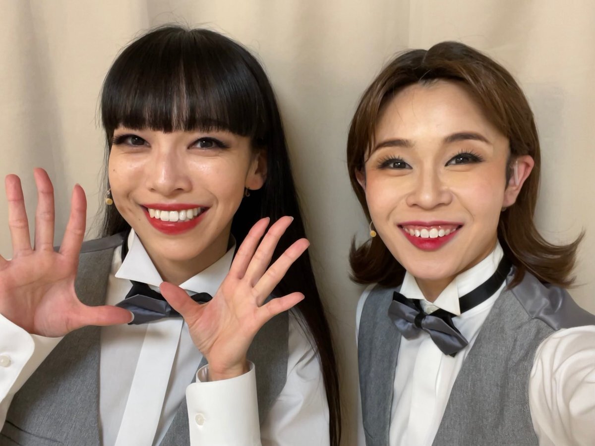 #純烈御園座初座長公演 無事に初日の幕が開きました!!!楽しかったー!!! そして上演中に純烈さんの紅白8年連続出場が決定という、素敵な瞬間に立ち会わせていただき光栄でした✨おめでとうございます🎊 2枚目は1部2部で相棒のゆめと👯♀️ 24日まで御園座でお待ちしております💜❤️💚 pic.x.com/EIu1ZYG3CV