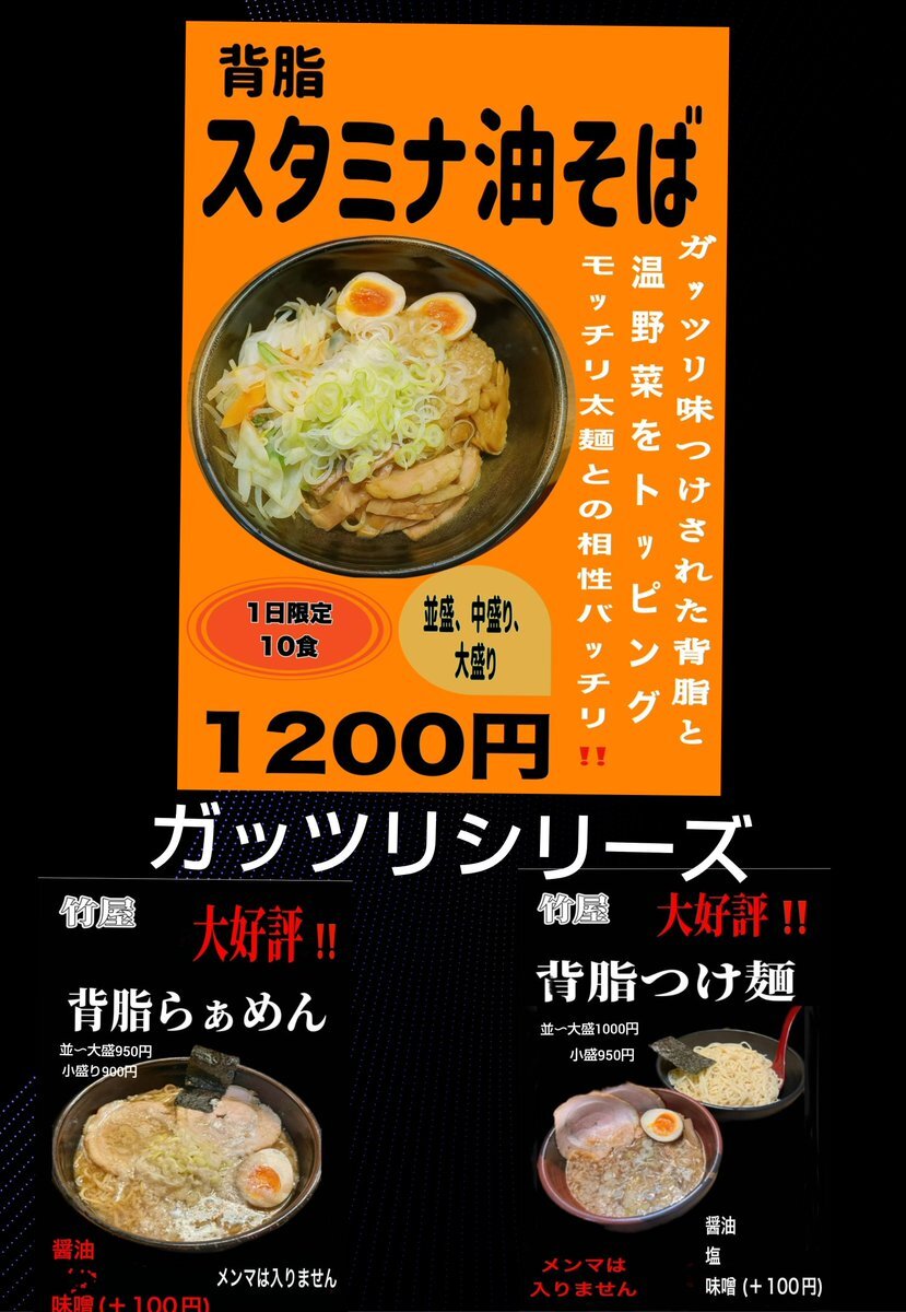 本日も11時〜15時、17時〜21時45分までの営業です✨ ガッツリ食べて良い週末をお過ごしください😊 #背脂 #つけ麺 #らあめん #油そば #大盛り無料 #紙エプロン有り #食事 #竹屋田無店 #春馬 #田無 pic.x.com/ALdTJ41wxl