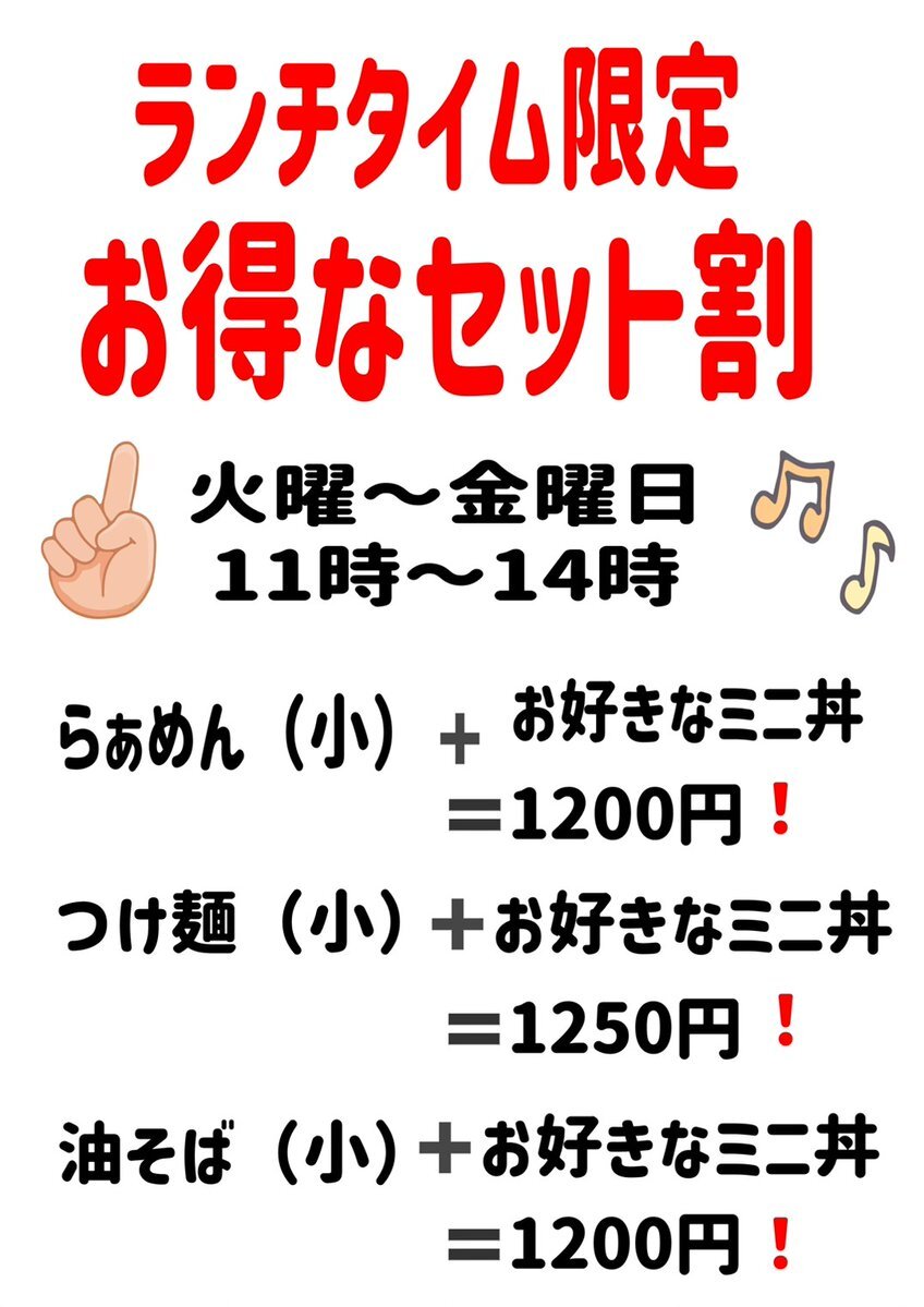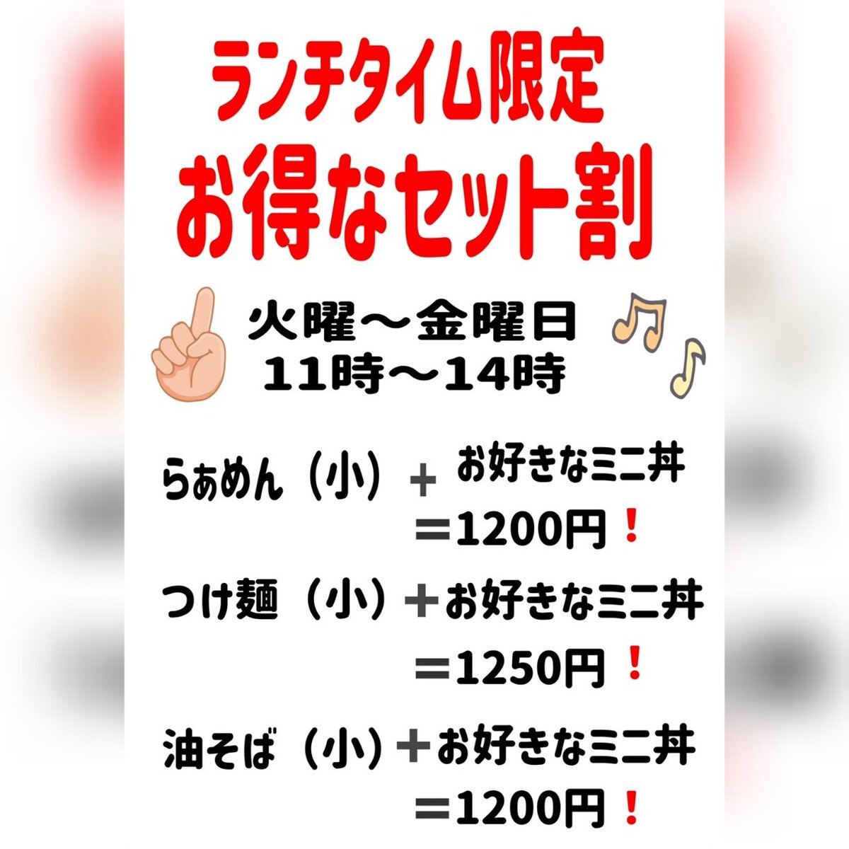 本日も11時〜15時、17時〜21時45分までの営業です✨ ランチメニューは11時〜14時までです✨ お待ちしてまーす😆😆 #ランチメニュー #つけ麺 #らあめん #油そば #背脂 #ミニ丼 #大盛り無料 #紙エプロン有り #竹屋田無店 #春馬 #西東京市 #田無 pic.x.com/IgJZKx3jyY