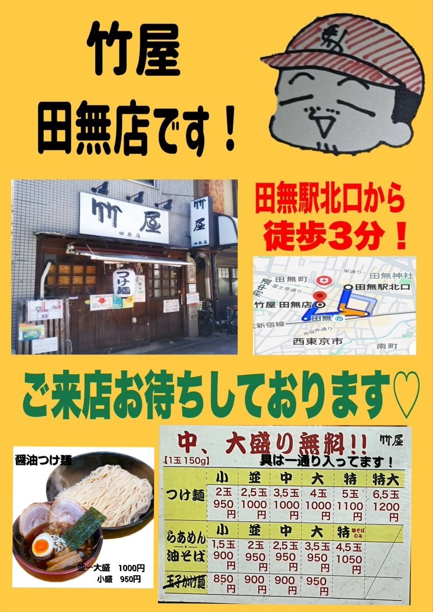 本日も11時〜16時、17時〜20時半までの営業です✨ 日曜日の竹屋を楽しんでください😊 #つけ麺 #らあめん #油そば #背脂 #食事 #大盛り無料 #紙エプロン有り #竹屋田無店 #春馬 #田無 #西東京市 pic.x.com/vDR5FnMBWw