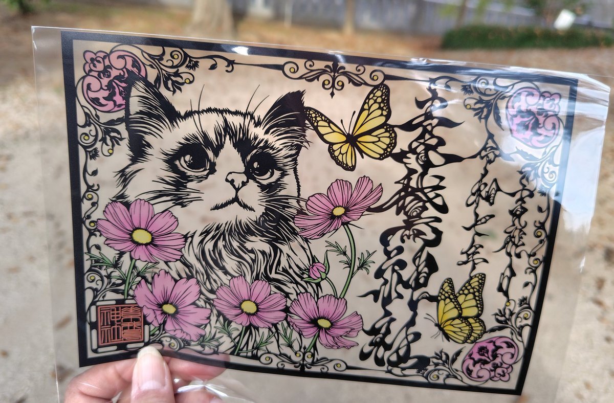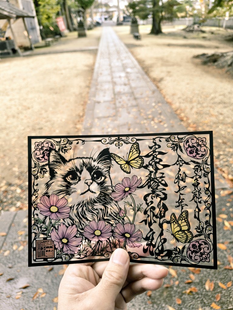 #251031 #素鵞神社 #切り絵風御朱印「コスモスと猫」 #瑞猫の御守(先を見通す透明な御守り) やっと行けた!ずっと欲しかったので嬉しい☺ instagram.com/p/DQslDwID4Nrj…