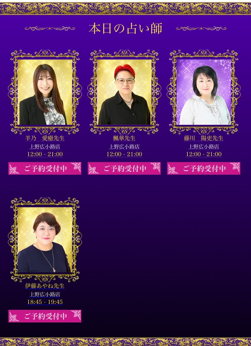 11/11(火)☯️本日の占い鑑定➡️店舗対面/電話・zoom ✡️新宿本店✡️ ➡️13:00~22:00 カレンフレイヤ @karenfureiya 華実木ローザ @kamikiroza ✡️池袋店✡️ ➡️13:00~20:00 マダム呼々 @madamcoco555 当日受付OK🉑➡️電話・LINEにて受付中 TEL➡️03-6278-9333 LINE ID➡️0362789333