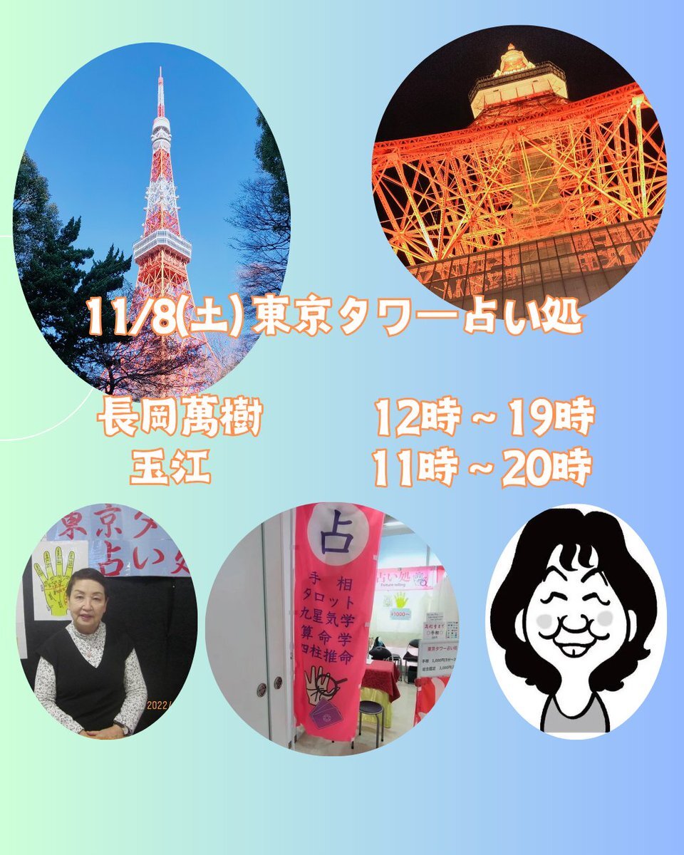本日の東京タワー占い処担当 ⭐長岡萬樹 @buntanagaoka ameblo.jp/nagaokamaki2 手相 タロット 紫微斗数 ⭐️玉江 @tamaemotooka 手相 人相 タロット 九星 気学 #東京タワー #東京タワー占い処 #東京プリント工房 #占い #手相 #タロット #紫微斗数 #人相 #九星気学 pic.x.com/uT18MFXKWn
