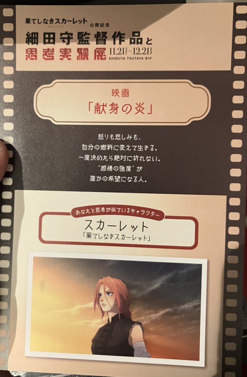【出演情報】 #細田守と思考実験展 携わらせていただきます!! あなたの旅の手助けができること とても嬉しく思います。 さあ、思考実験受けてみませんか? 🗓️11/21〜12/21 📍SHIBUYA TSUTAYA 🎫 shikoujikkenten.com/scarlet x.com/hosoda_shikou/…
