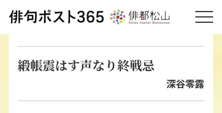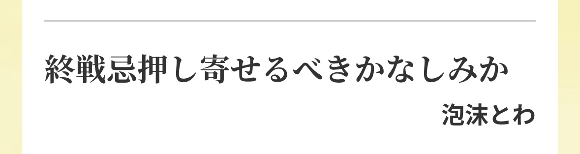 俳句ポストの中級者部門、兼題 終戦記念日にて、並選をいただきました! 今回は難しく、類想だろうなぁ…と落ち込みながら見ていたので、嬉しい結果でよかったです。 いつの間にか結果発表が終わっていました…時間が経つのが早い。 #俳句 #俳句ポスト #終戦記念日 pic.x.com/c4Obj2jaNo