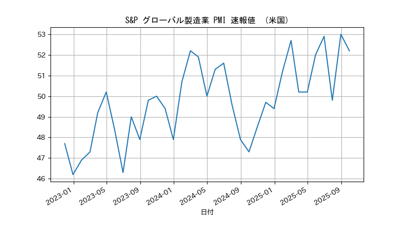 2025/10/24 22:45 発表 S&P グローバル製造業 PMI 速報値 (米国) 今回発表値: 52.2 予想: 52 前回発表: 52 出所: S&P グローバル #経済指標 #米国 #製造業PMI速報値 pic.x.com/aKfVxVHX7V