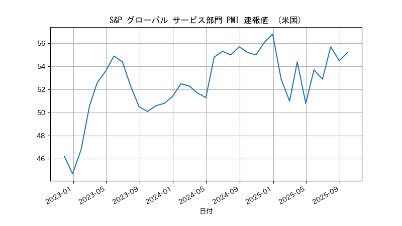2025/10/24 22:45 発表 S&P グローバル サービス部門 PMI 速報値 (米国) 今回発表値: 55.2 予想: 53.5 前回発表: 54.2 出所: S&P グローバル #経済指標 #米国 #サービス部門PMI速報値 pic.x.com/TCV7ERVFQO