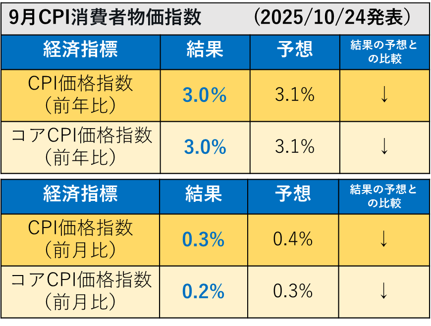 【経済指標結果速報】 10月24日 21時30分 <米> ■9月消費者物価指数(CPIコア指数)(前年同月比) ・予想:3.1% ・結果:3.0% inet-sec.co.jp/market/ #FX #為替 #経済指標