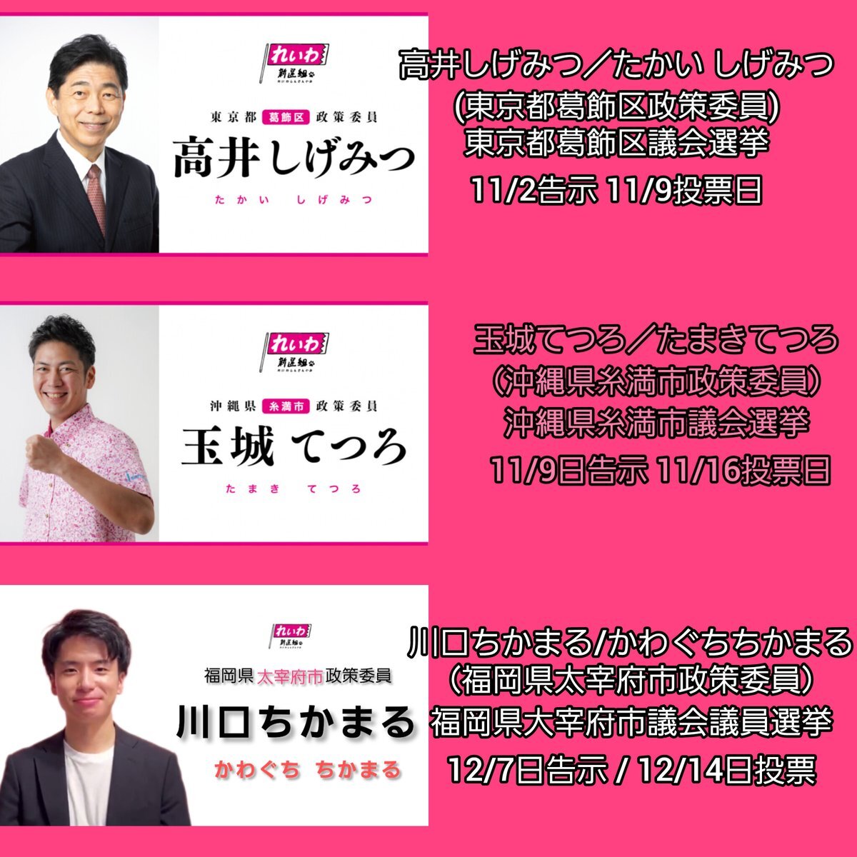 11月&12月のれいわ新選組さん 公認公認予定者さんなのです🙇 #高井しげみつ さん @reiwa_takai #玉城てつろ さん x.com/Tetsuro1985092… #川口ちかまる さん @Chikamaru_Kawa
