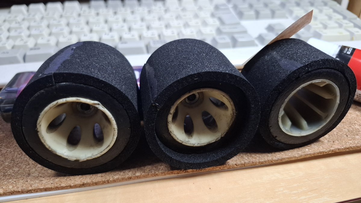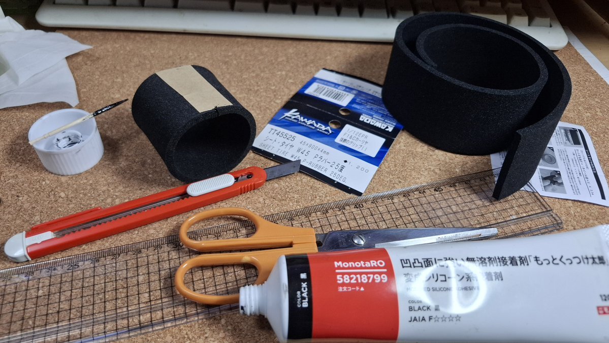 (マネージャー)11/09  今日は雨で #晴耕雨読☔  負荷がかかる右後輪の #シートタイヤ を貼替え、さらにチビチビになった #青柳金属工業 #RX2000 用後輪にも #カワダ模型 #Pタイヤ を貼った✨  #経験則 として #両面テープ+#リムーバー の際は、両側にタイヤのフチを残すのがイイかな?#RX3000改 pic.x.com/6HAgR6SGSe