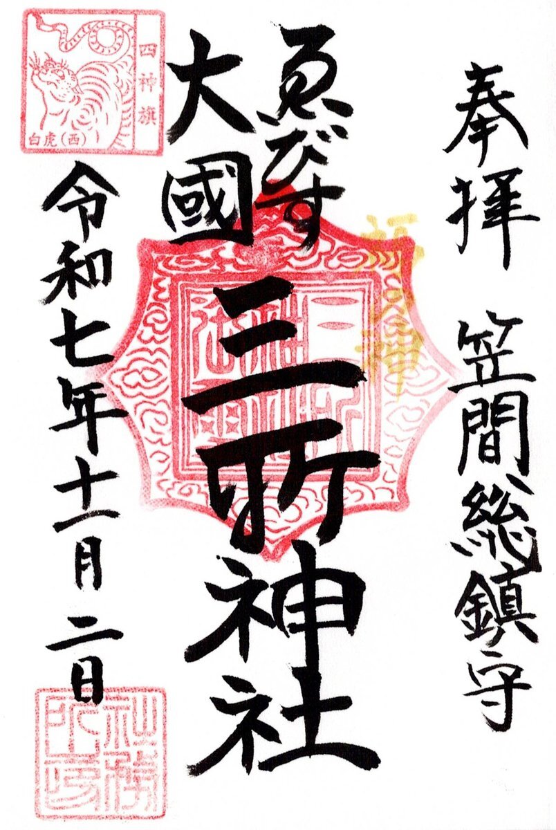 #結月大佐の御朱印さんぽ #三所神社 『笠間三所神社』 住所→ 〒309-1611 茨城県笠間市笠間353 祀神:大國主大神、事代主大神(ゑびすさま)、美穂津姫大神 御朱印:あり 駐車場︰あり 備考︰ ・創建年代は、貞観年中(859年-877年)の頃と伝わっている pic.x.com/k9QdkfDCPD
