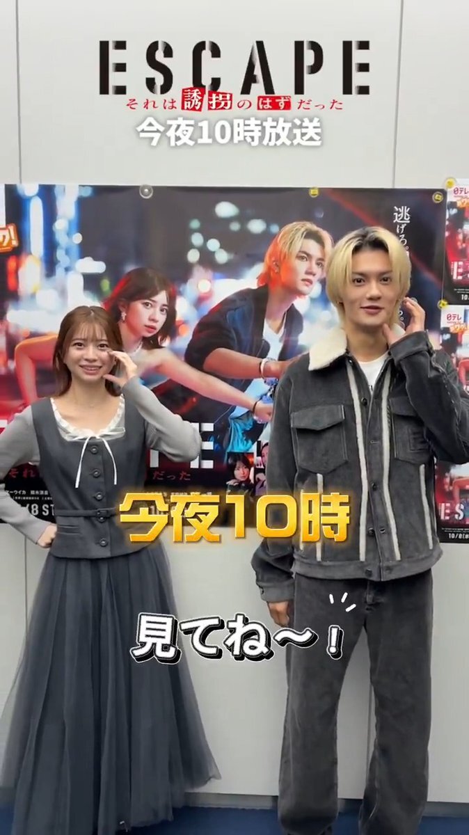 / 『𝐄𝐒𝐂𝐀𝐏𝐄 それは誘拐のはずだった』 ついに今夜放送✨ \ この日がやってまいりました‼️ 今夜10時から放送スタートです🏃🏻🏃🏻♀️ 2人は一体何から逃げ どこに辿り着くのか...⁉ お楽しみに😊 𝟏𝟎月𝟖日(水)よる𝟏𝟎時スタート #桜田ひより #佐野勇斗 #エスケイプ