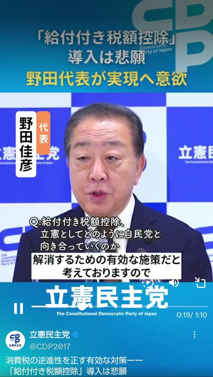 返信先:@honjosatoshi立憲民主党と公明党の政策は、かなり近いと常々感じています。 #給付付き税額控除 #軽減税率 おいおい(ノ∀`) #同床異夢 #消費税廃止 pic.x.com/sgcAwPefoD