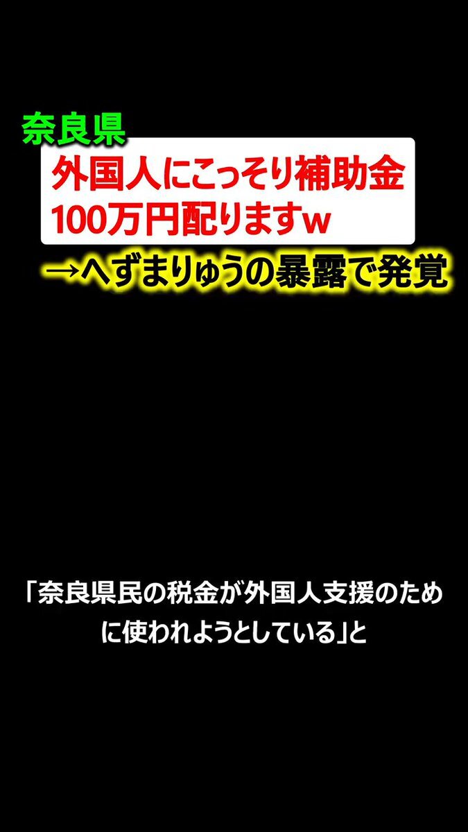 奈良県「外国人にこっそり補助金100 万円配ります」