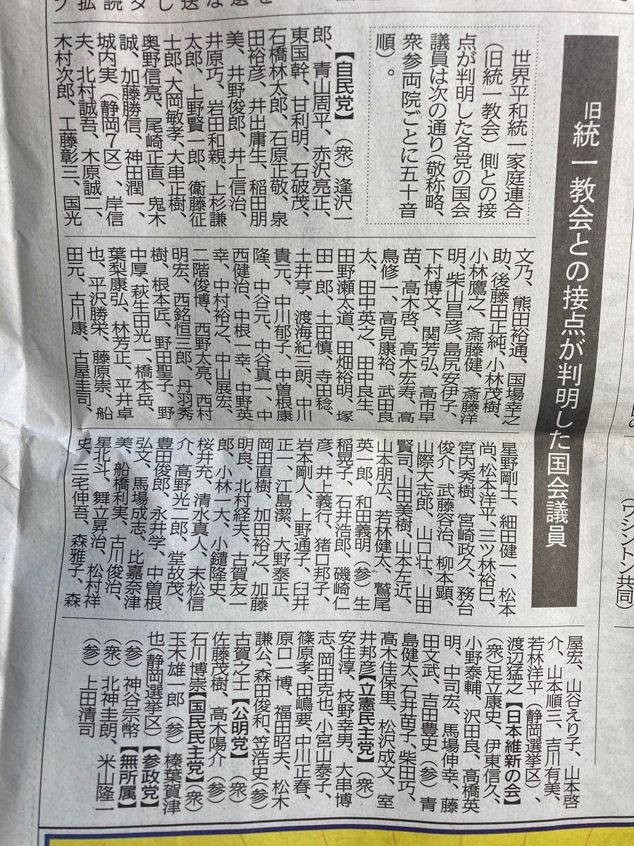 返信先:@galleryviscont#参政党に騙されるな #統一教会との危険な関係 #高市早苗、#神谷宗幣、#石破茂 #原口一博 #玉木雄一郎… 稲田朋美 城内実 木原誠二 二階俊博 萩生田光一 林芳正 生稲晃子 下村博文 山谷えり子 枝野幸男 岡田克也 米山隆一 pic.x.com/FKJl25czox
