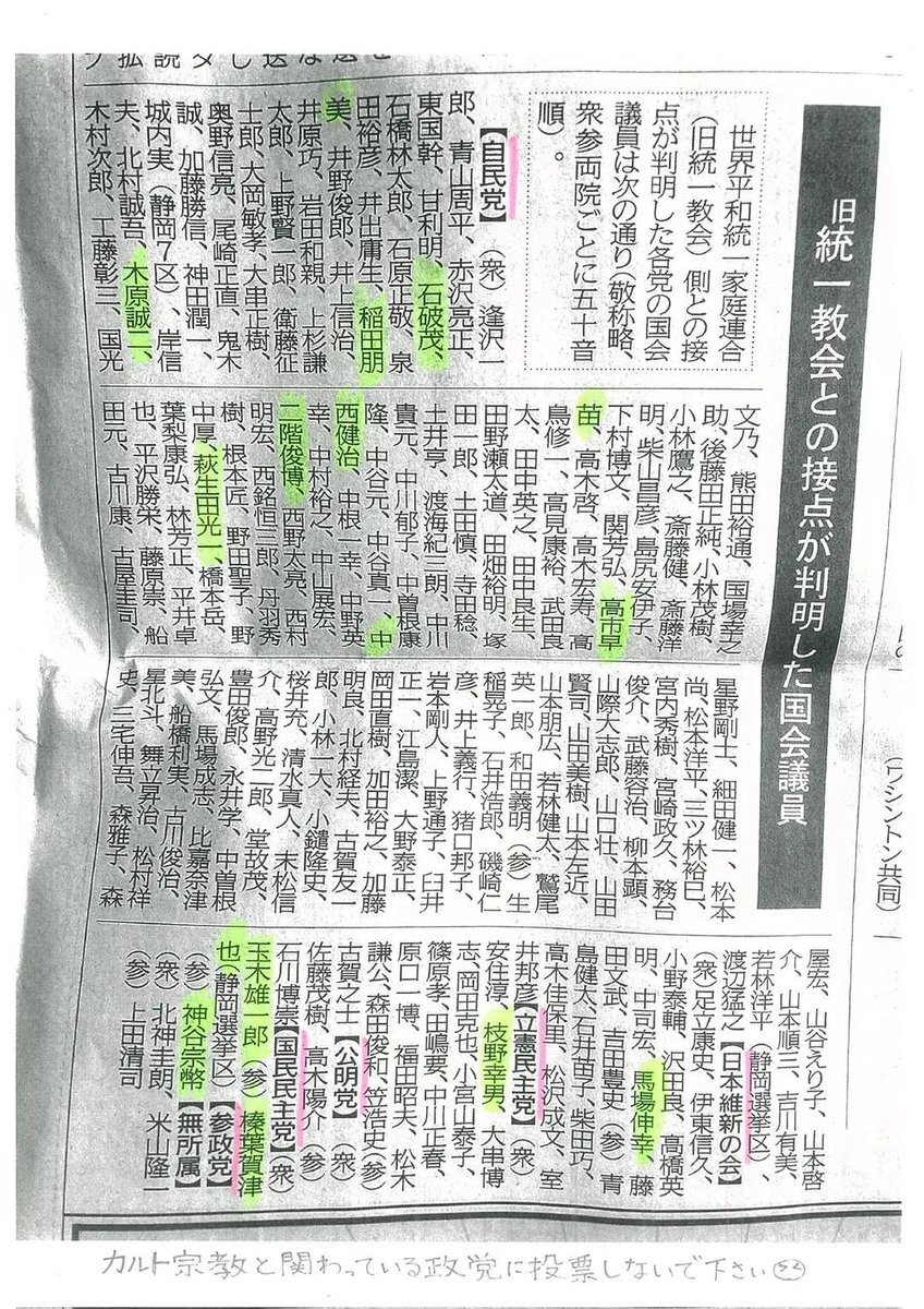 皆さん統一教会と関係のある政治家は1人でも落とそう。奴等を当選させるのは、カルトと政治が癒着するのを承認してるのと同じです。 #統一教会 #第27回参議院議員選挙 #統一教会と接点があった時点でアウト #自民 #維新 #立憲民主党 #公明党 #国民民主党 pic.x.com/tbGTx0s6b2