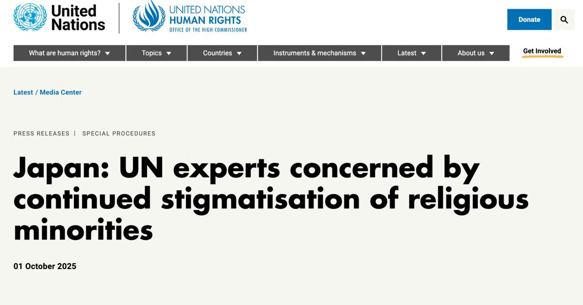 ━━━[速報🚨]━━━ 旧統一教会解散決定に対し、国連専門家が国際法違反を警告! #国連 人権高等弁務官事務所は、旧統一教会に対する東京地裁の解散決定等に関して、国連特別報告者が国際法違反を警告したとのプレスリリースを発出しました。 ━━━━━━━━━━━━ ◇
