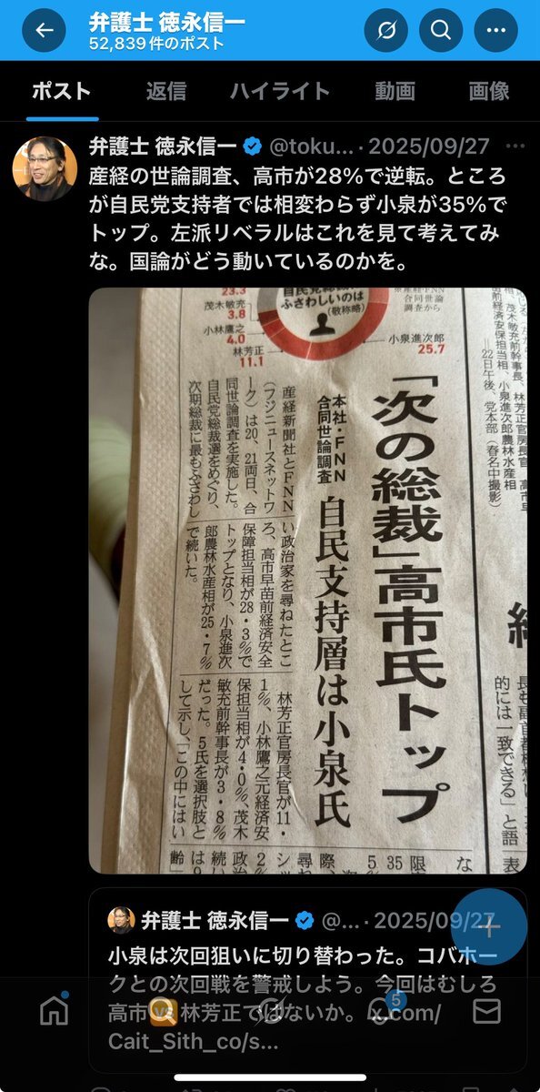 コイツ高市が総裁になってからめちゃくちゃ生き生きしてんなwwww 仲間だってこともう隠しもしてねえしwwww