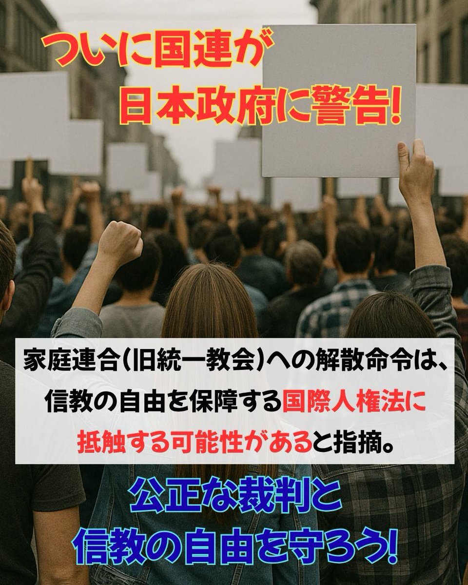 🚨国連が動きました‼️ 家庭連合(旧統一教会)への解散命令に、 「国際法違反の可能性」との警告。 これは一宗教の問題ではなく、 “日本が自由を守れる国か”が問われています。 #国連 #信教の自由 #家庭連合 x.com/religion_osaka…