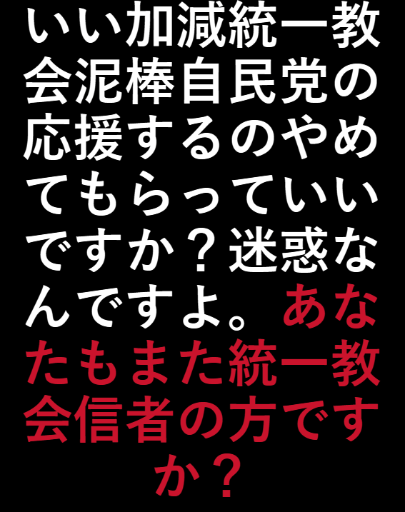 返信先:@sxzBSTあー 壺野郎は黙ってろ #統一教会は日本から出ていけ