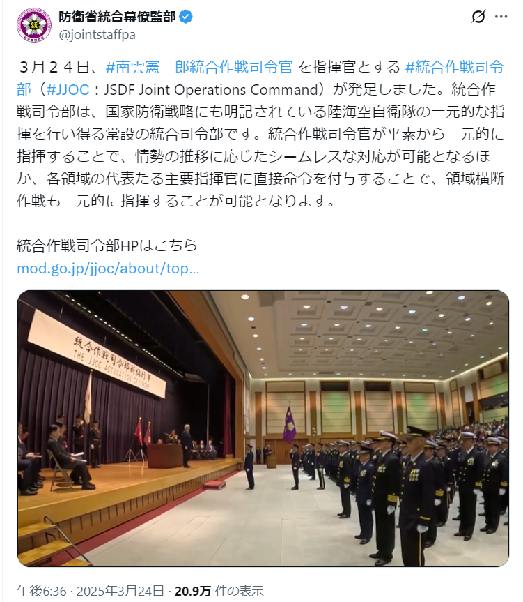 防衛省統合幕僚監部@jointstaffpa