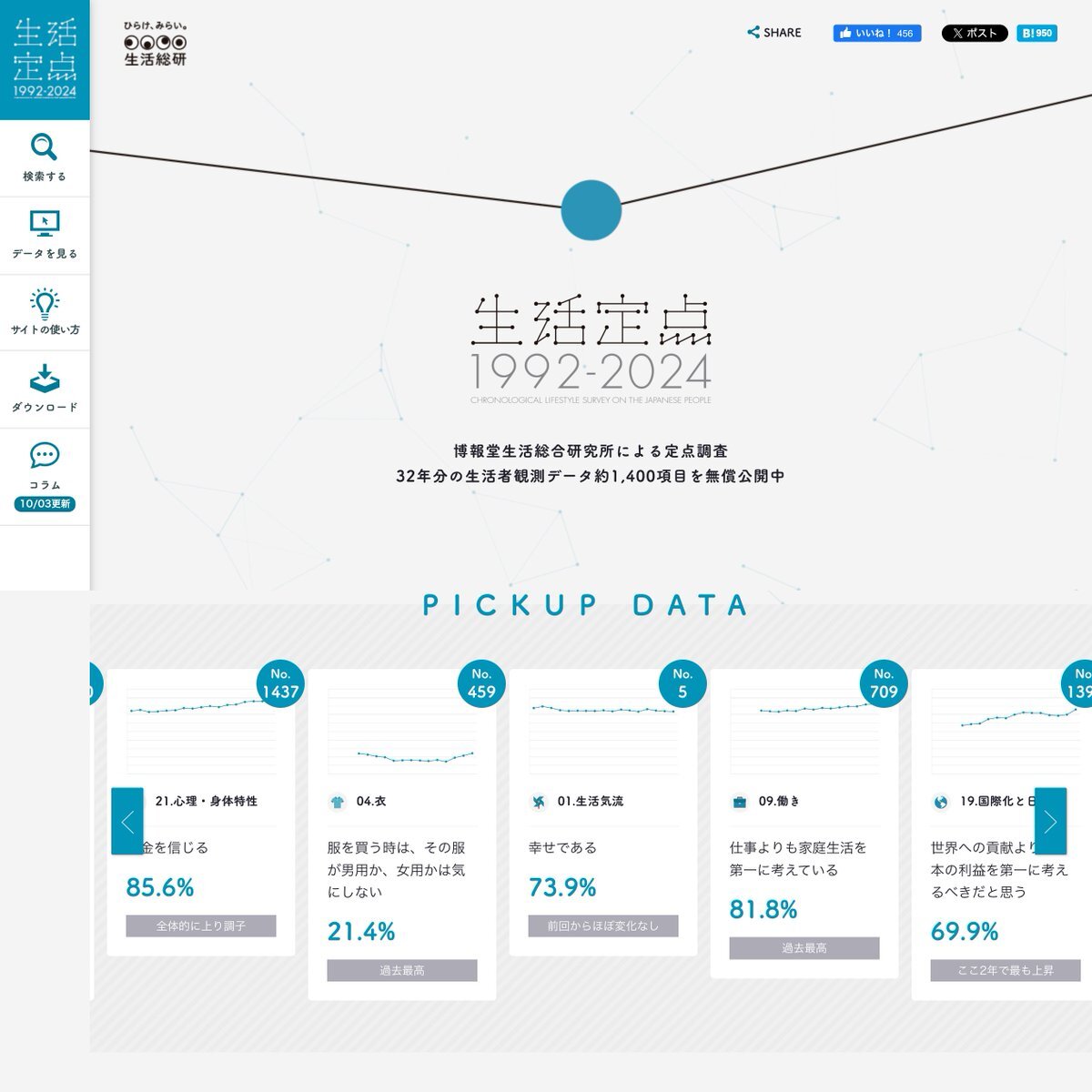 #デザイン今日は何の日🗓️ 10月18日は…「#統計の日」 「統計」と聞くと固そうだけど、 博報堂生活総研の「定点観測」は、生活者のリアルな変化が数字で見えて面白いです。 デザインの企画やリサーチのヒントにも◎ seikatsusoken.jp/teiten/ pic.x.com/94T8VWp4qX