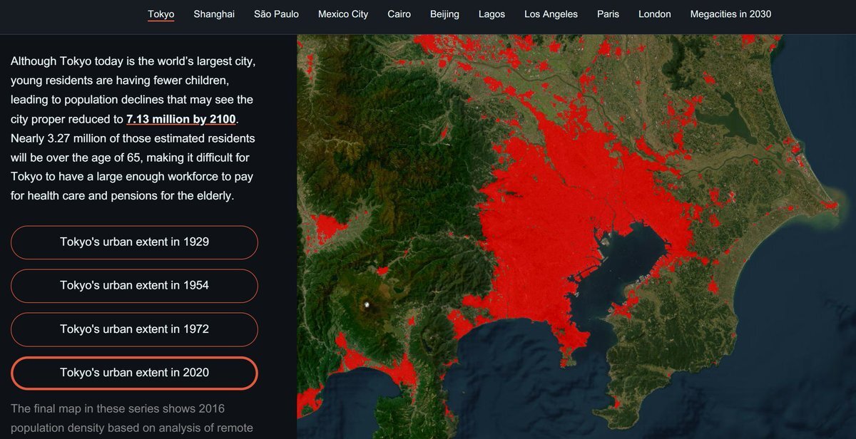 10/18 は #統計の日 世界の大都市の人口の様子をみてみましょう👀 こちらは、世界の中の大都市、東京の大都市圏の様子 pic.x.com/8peUKEGJ6J
