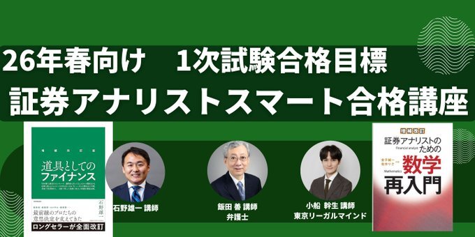 11/25まで2割引! 【配信期限:26秋/全科目/中上級】 1次証券アナリスト0.8年短期速習コース 21年秋までの中級以下の過去問演習は倍速で、22年春以降の中級以上の過去問演習と上級予想問題演習はじっくりと学習したい理系 / 数理経済学 / #統計検定 #データサイエンス 基礎 相当の方に最適! pic.x.com/YEoZ4D3LiE