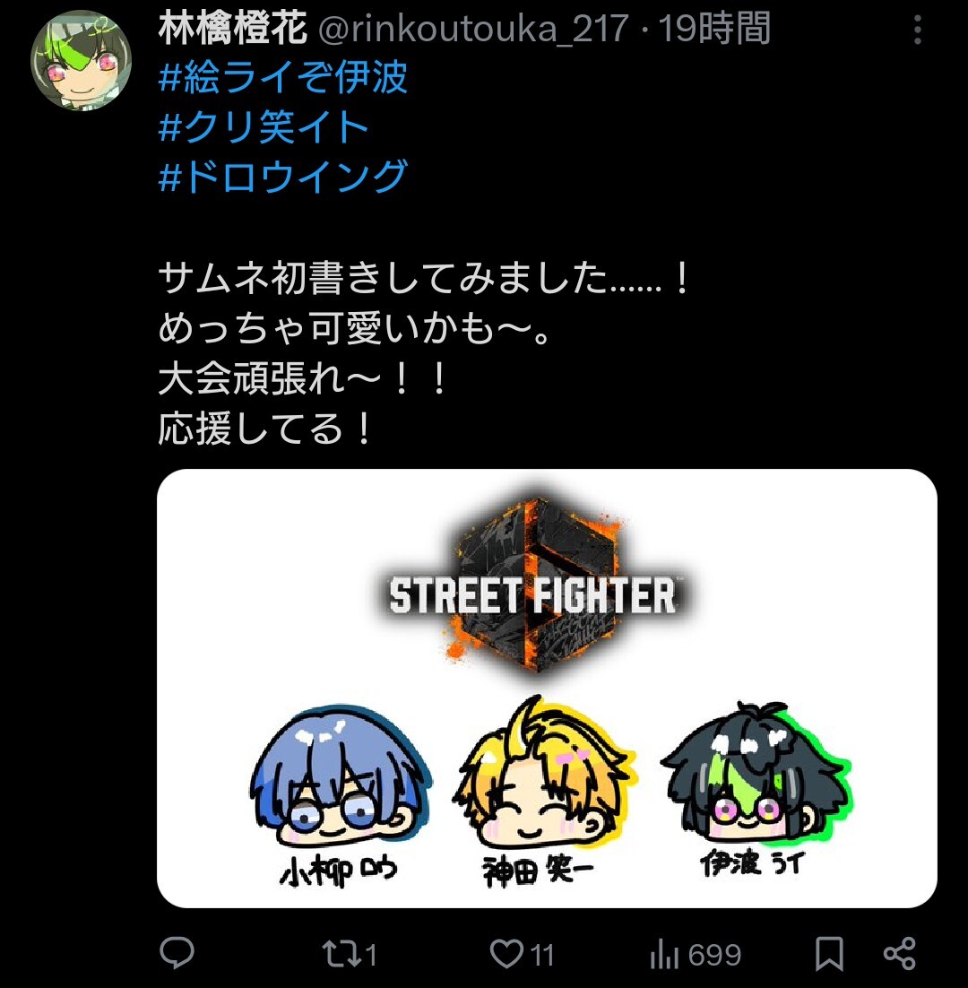 スト6のサムネ書いたやつ、10いいねいってる……!? ありがと〜(*´σー`)エヘヘ #絵ライぞ伊波 #クリ絵イト #ドロウイング #KZHCUP #KZHCUPRUMBLE pic.x.com/xcYqXiPUvV